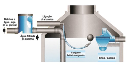 Filtro para captação de água de chuva.