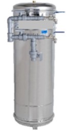 Filtro de água fabricado em aço inox, possui registro e torneira para retrolavagem.